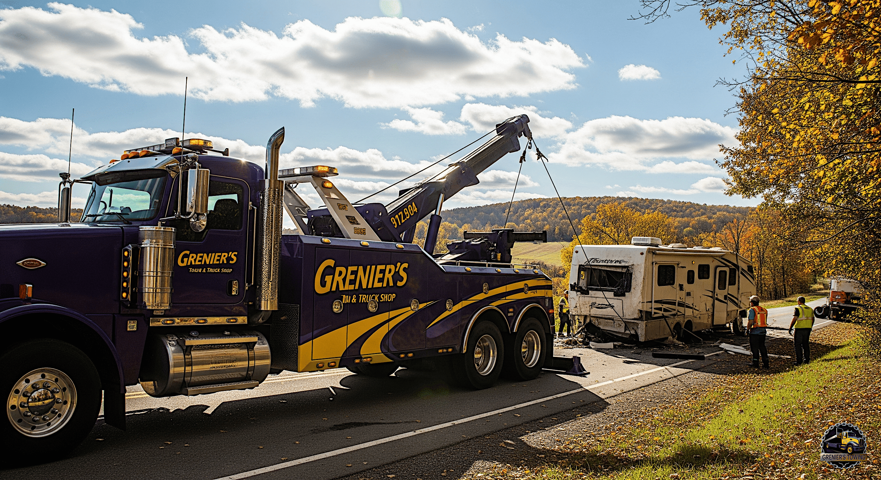 Fast RV accident towing services, available 24/7 across towing Vermont and roadside assistance New Hampshire in towns like Laconia, Meredith, Franklin, Gilford.