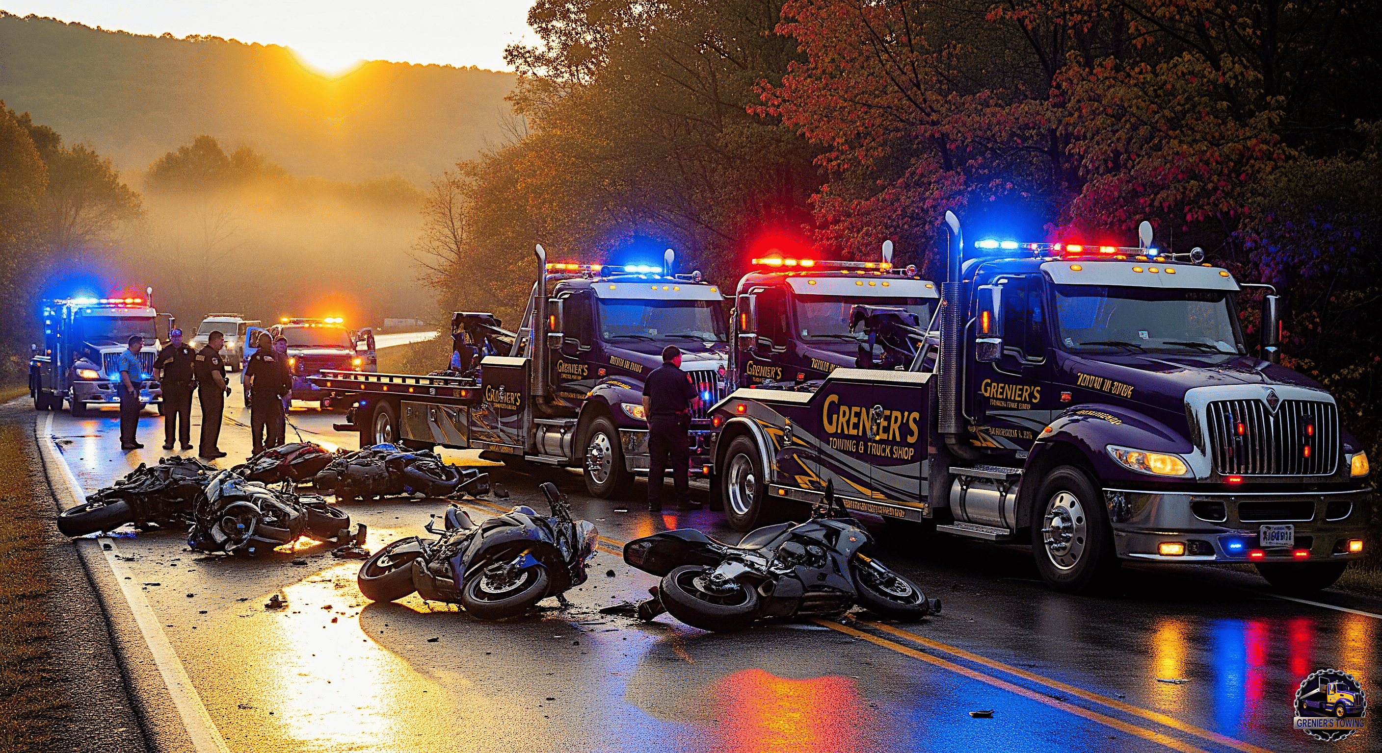 24/7 motorcycle accident towing services, available for roadside assistance in Ashland, Tilton, Alton with accident recovery New Hampshire capabilities.