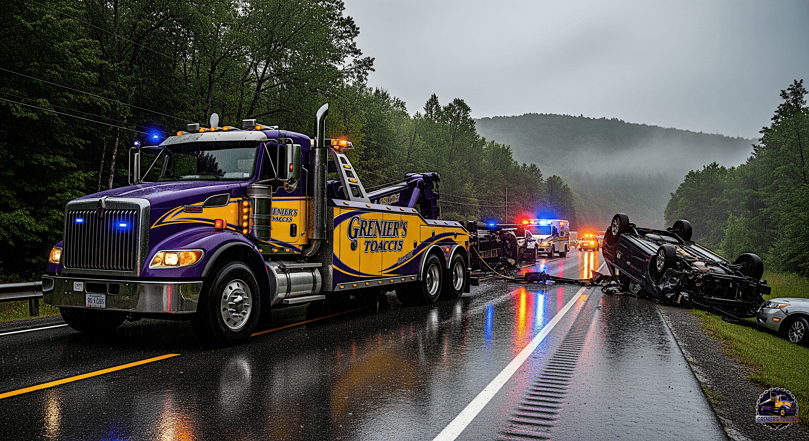Rapid car accident towing in West Charleston, VT, available 24/7 for roadside assistance Vermont and emergency accident recovery in Orleans County towing and Essex County towing areas.