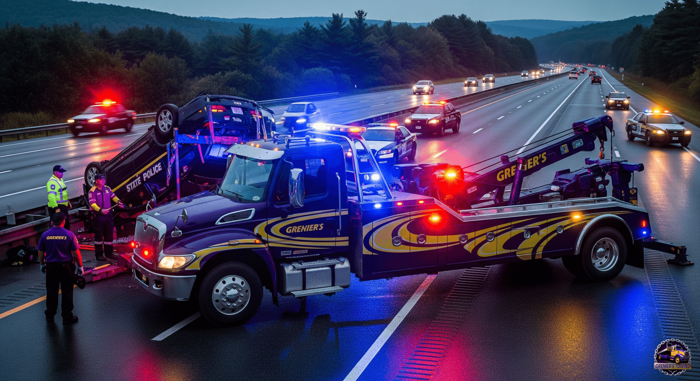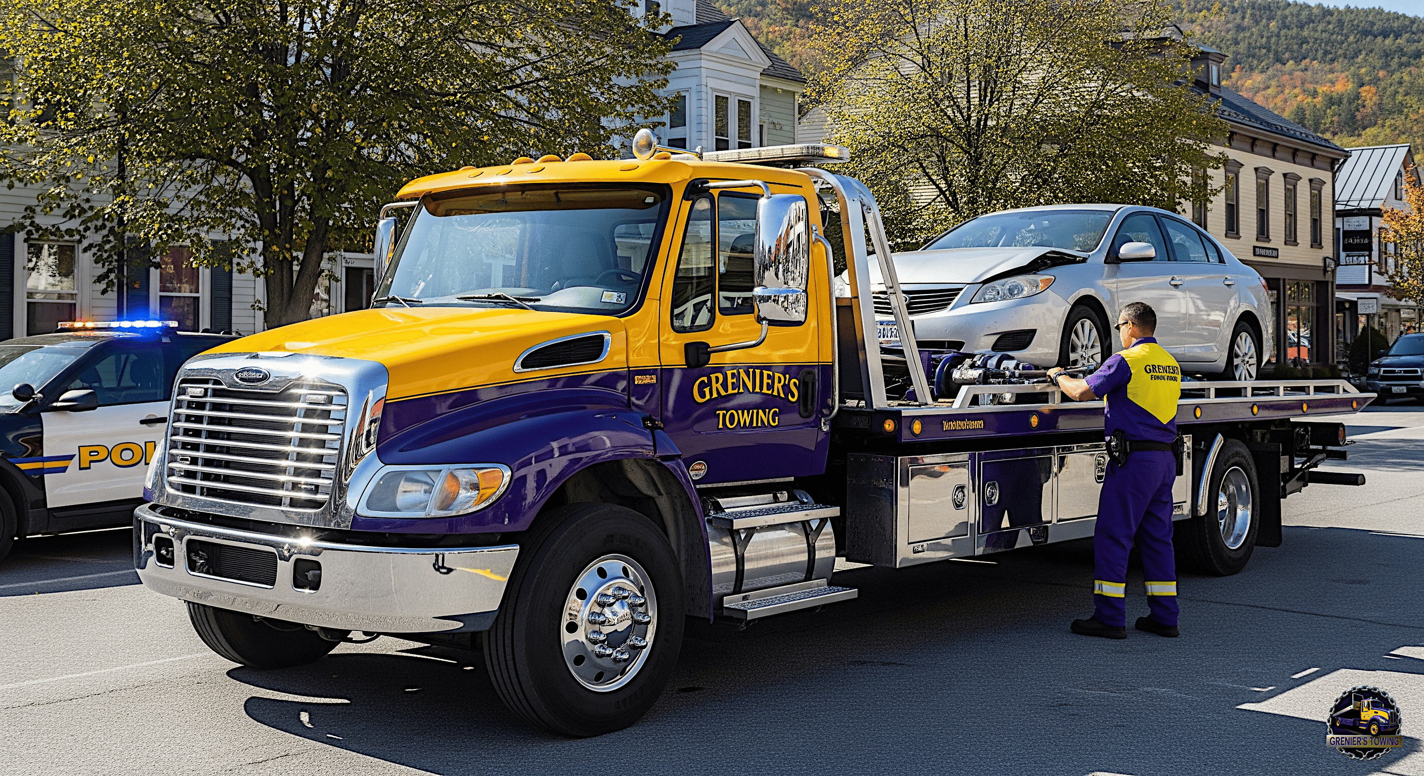Grenier's Towing & Truck Shop is equipped with a robust fleet of heavy-duty wreckers, rotators, and flatbeds to handle accident towing and recovery for all vehicle types, including cars, trucks, RVs, and motorcycles. As an AAA-approved provider, we ensure damage-free recovery, trusted by major insurance companies across Vermont and New Hampshire.