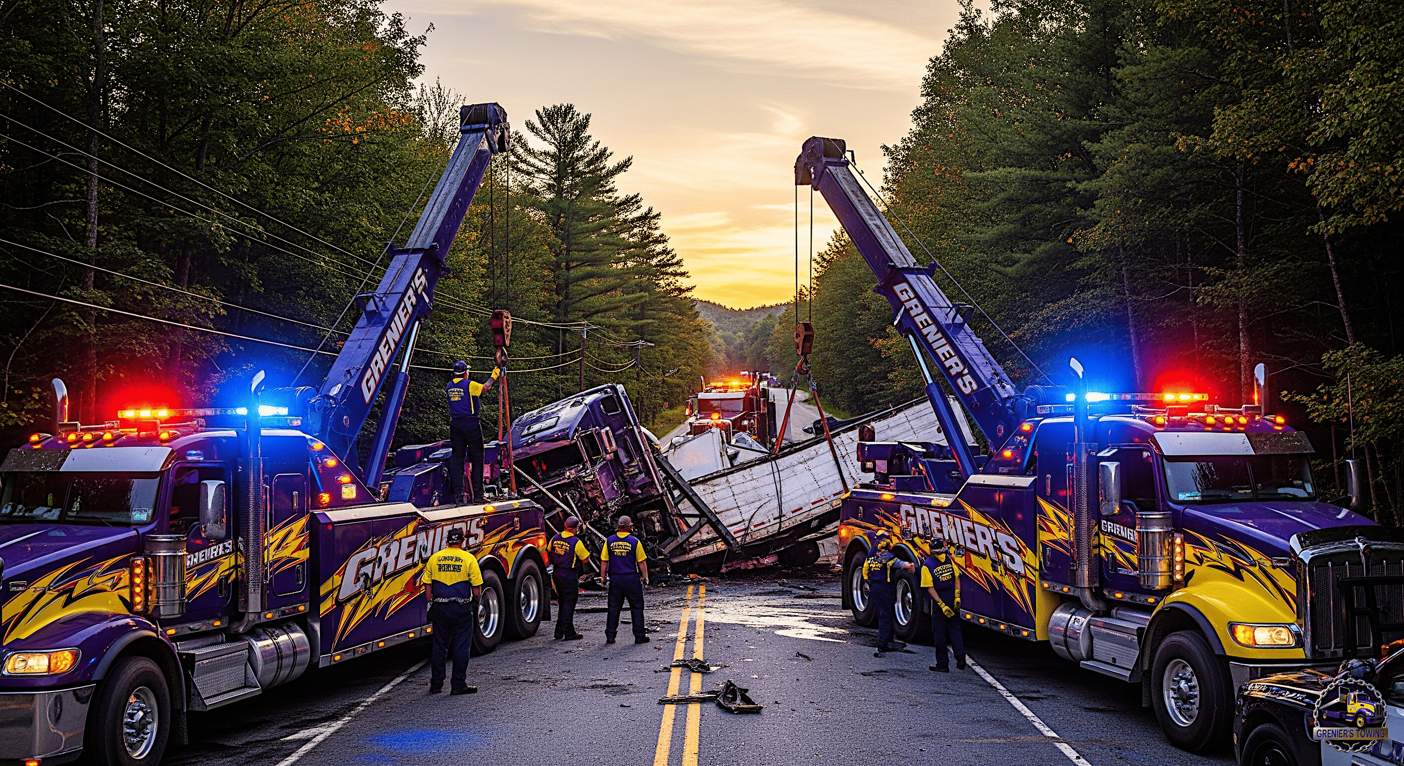 Professional truck accident towing, ensuring damage-free recovery for roadside assistance New Hampshire and emergency accident recovery Laconia in Washington County parts.