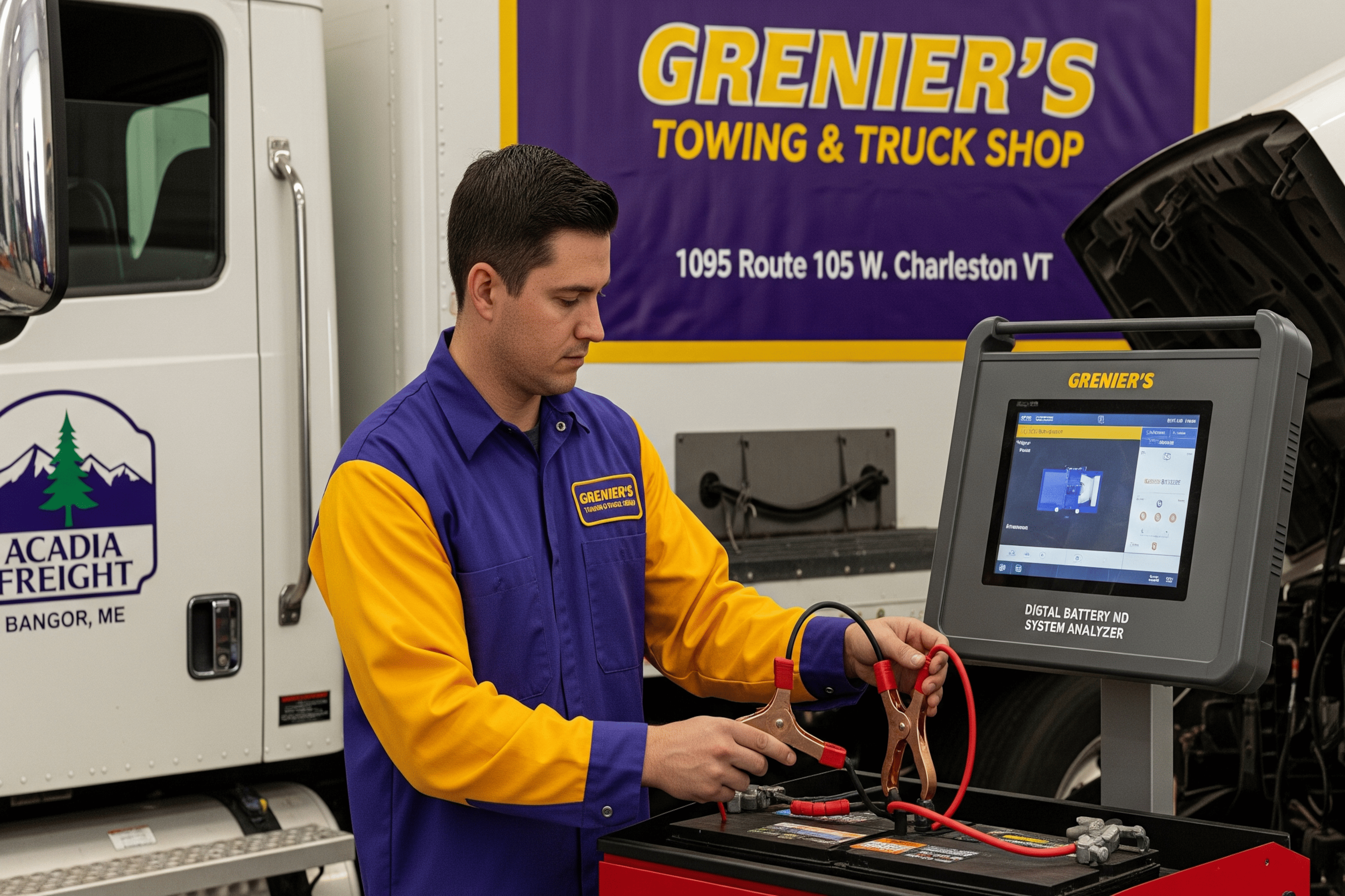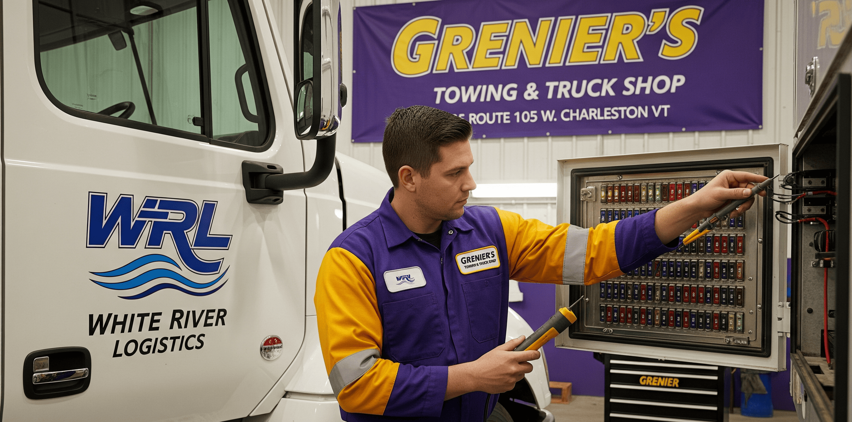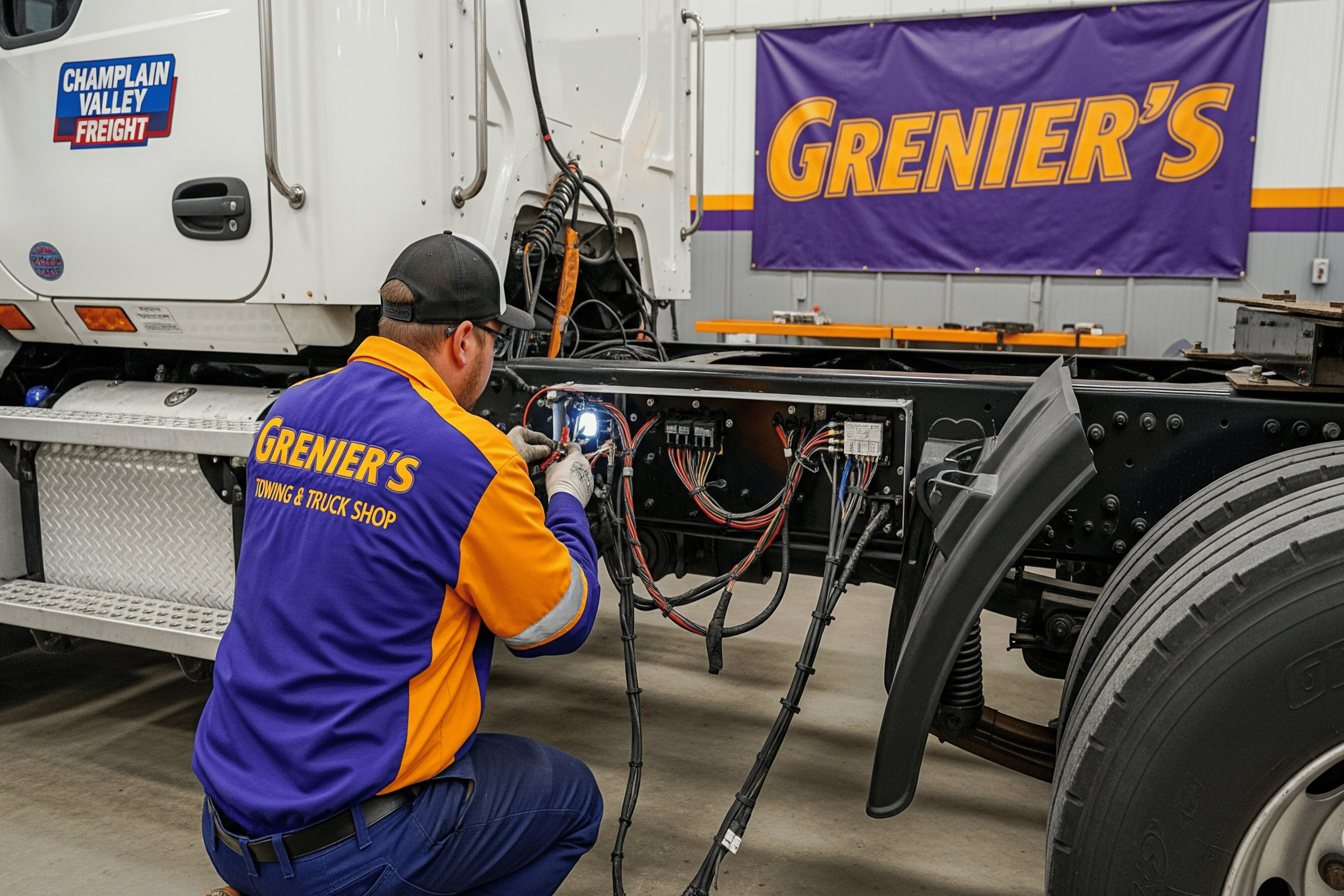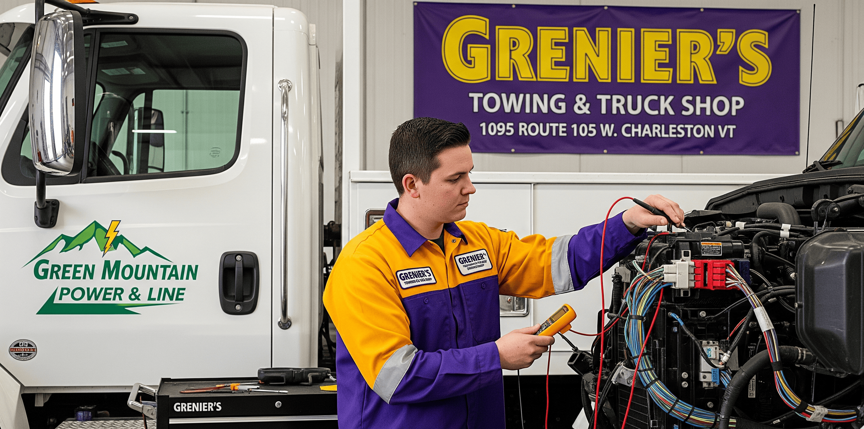 At Grenier's Towing & Truck Shop in West Charleston, VT, we provide superior electrical diagnostics and repair for heavy-duty vehicles. With over 20 years of proficiency, our technicians pinpoint issues and restore electrical systems, serving Vermont and New Hampshire, including Orleans, Essex, Caledonia, Lamoille, and Washington Counties, as well as towns like Laconia and Meredith.