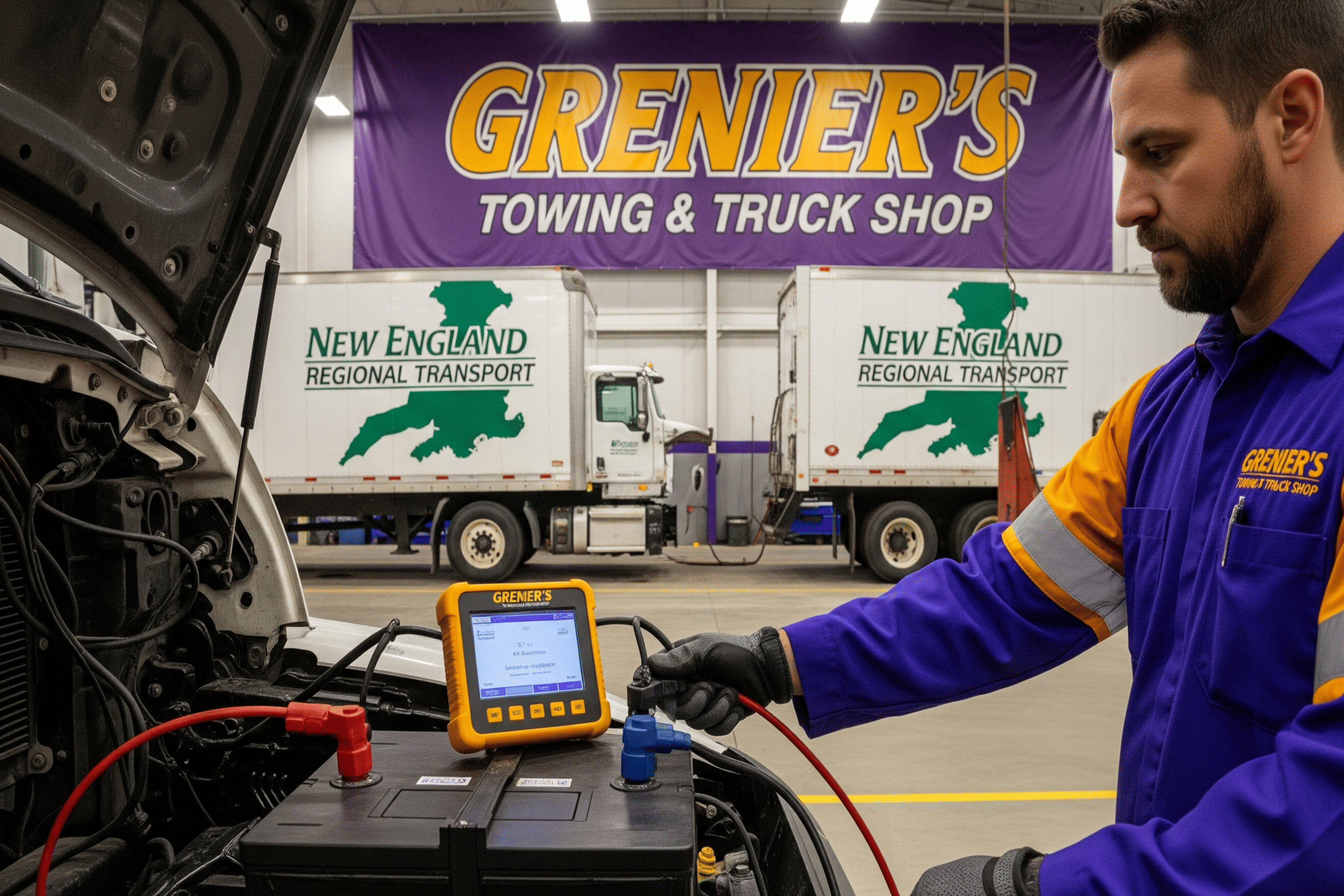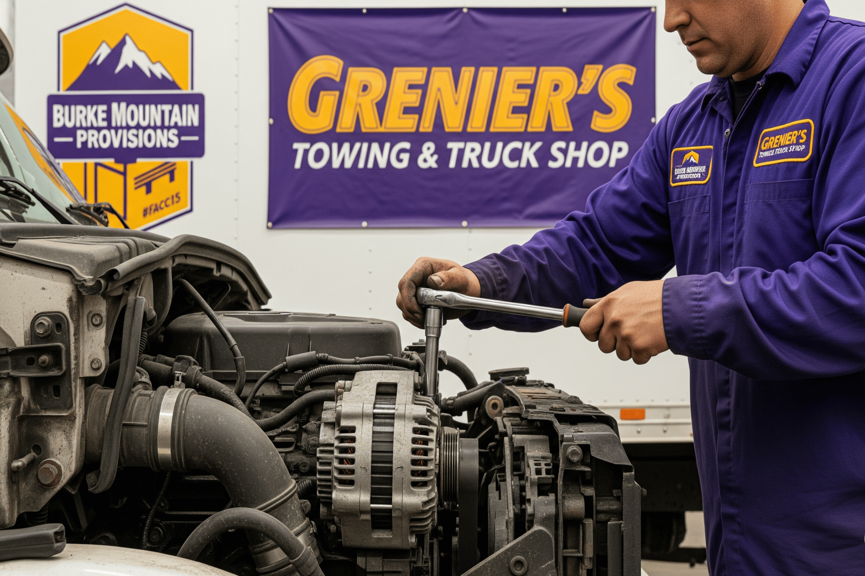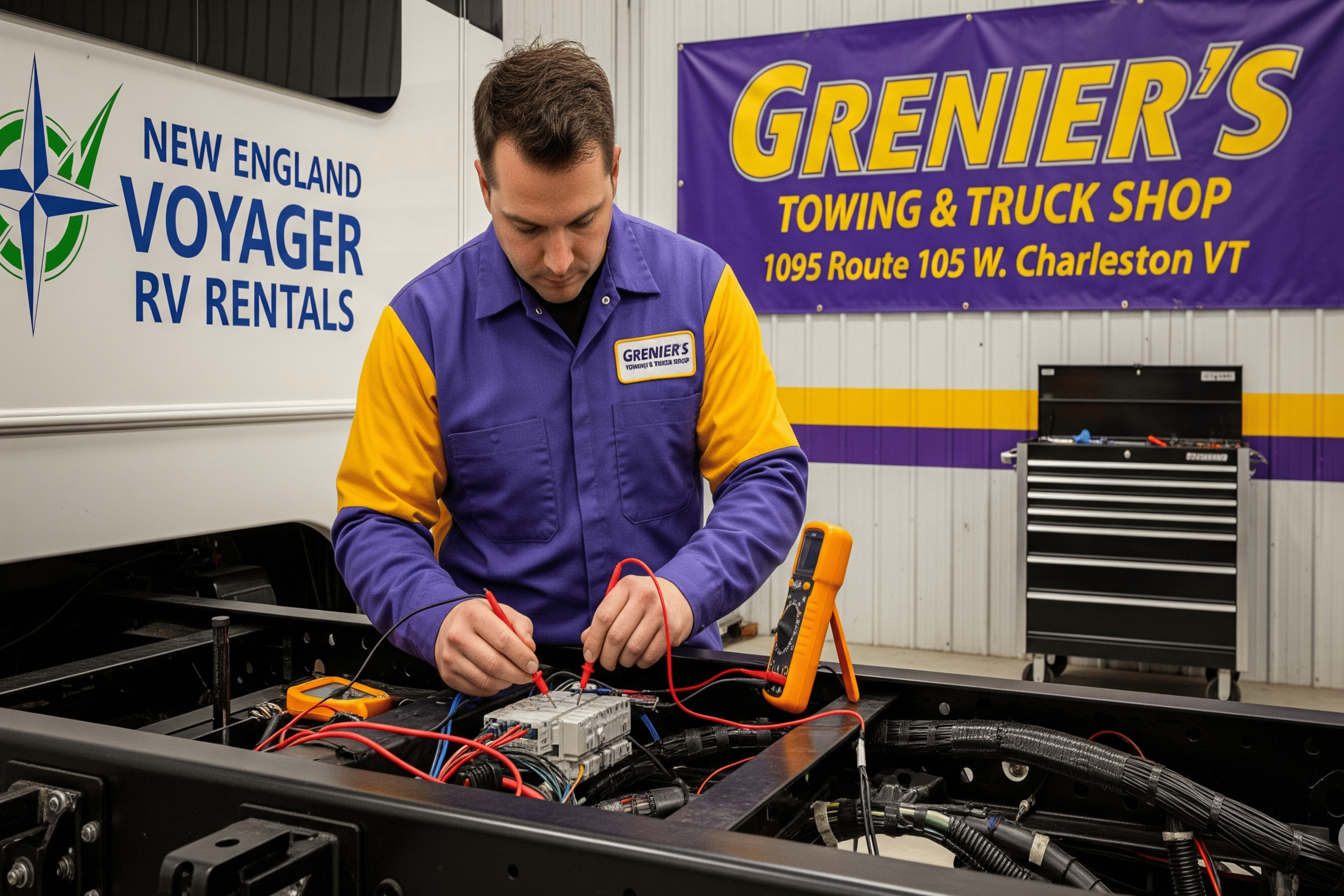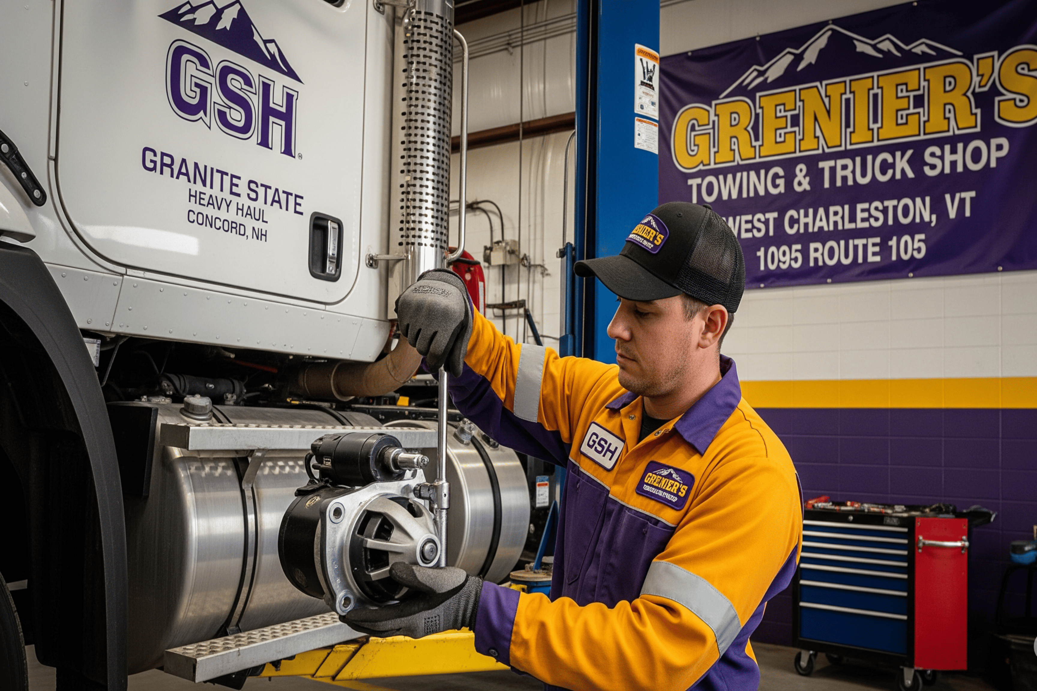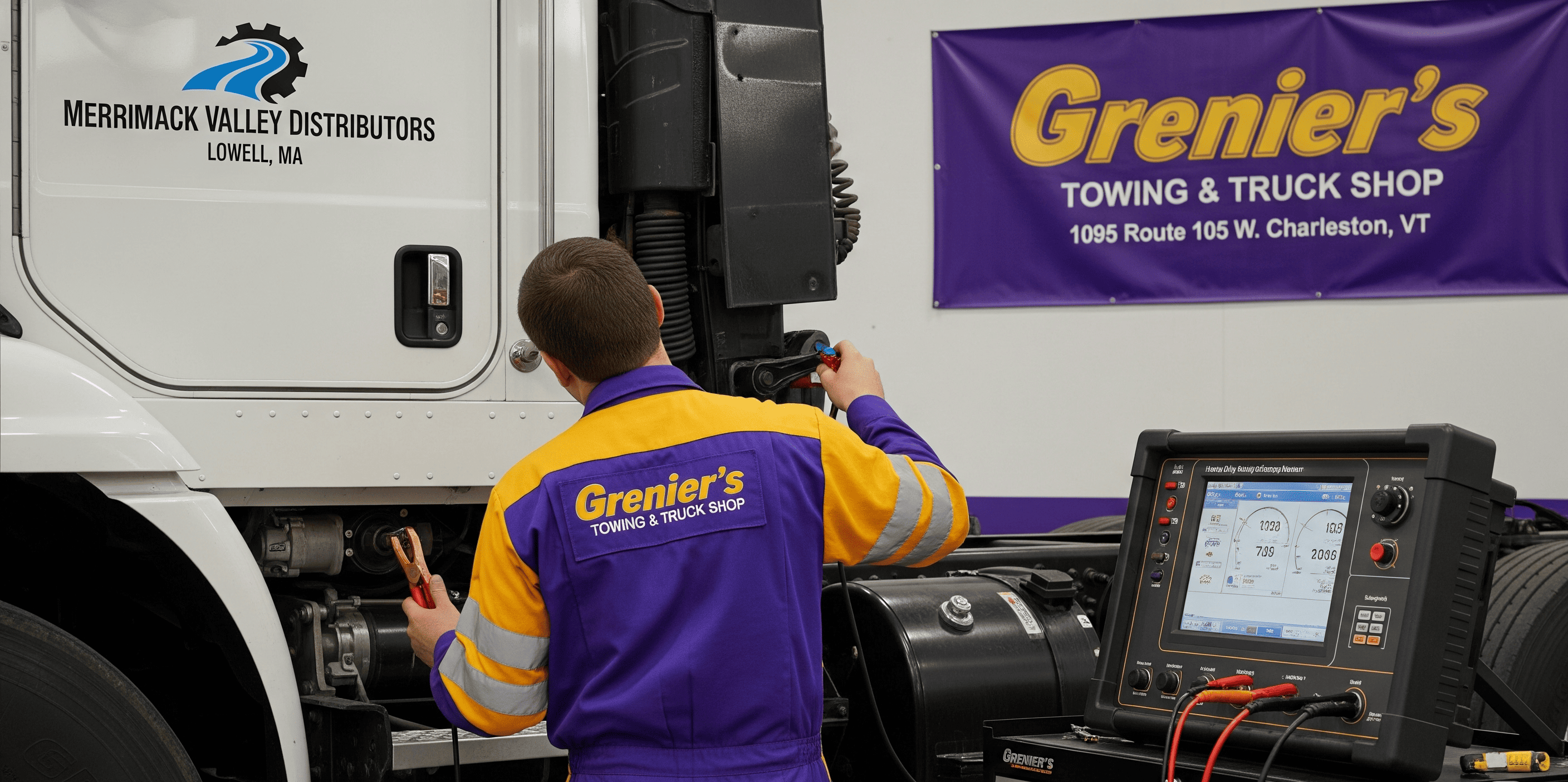 At Grenier's Towing & Truck Shop in West Charleston, VT, we provide superior electrical diagnostics and repair for heavy-duty vehicles. With over 20 years of proficiency, our technicians pinpoint issues and restore electrical systems, serving Vermont and New Hampshire, including Orleans, Essex, Caledonia, Lamoille, and Washington Counties, as well as towns like Laconia and Meredith.