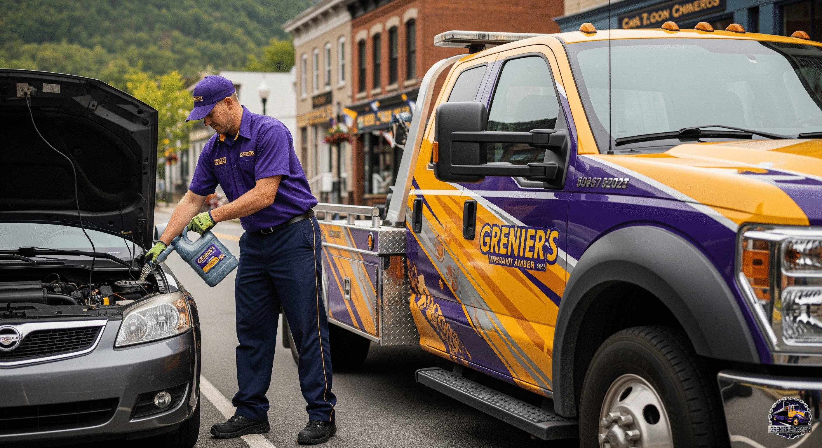 Grenier's Towing & Truck Shop, with over 20 years as an AAA-approved provider, delivers rapid and reliable fuel and fluid delivery services across Vermont and New Hampshire. Whether you’re stranded with an empty tank or need critical fluids like coolant or oil, our team ensures safe and efficient delivery in any condition.