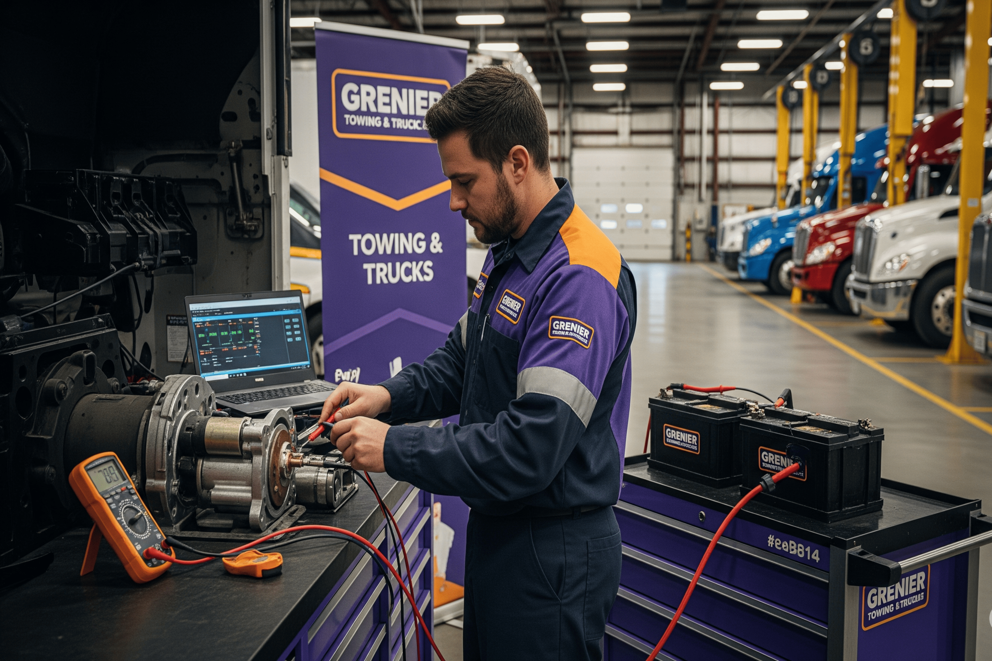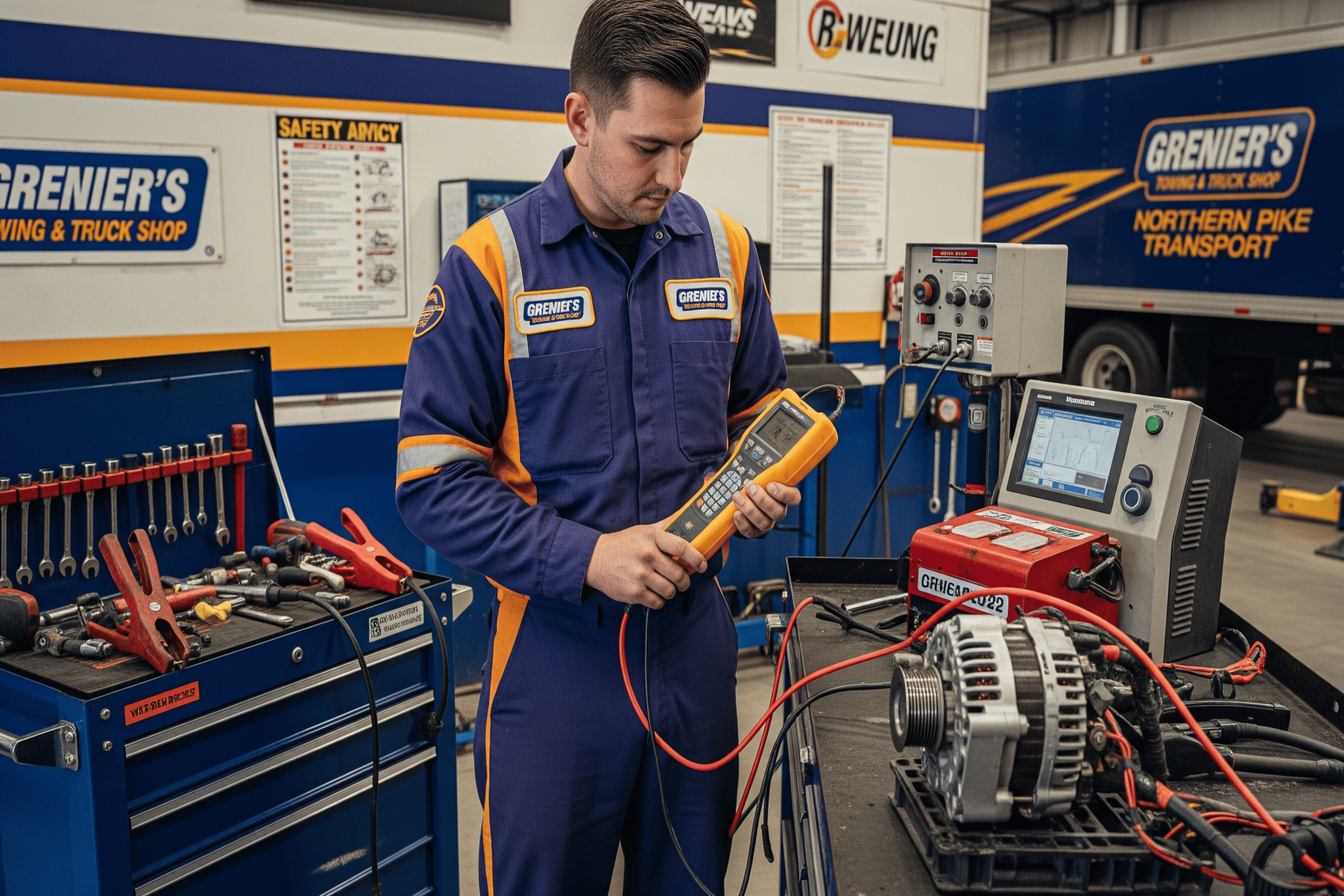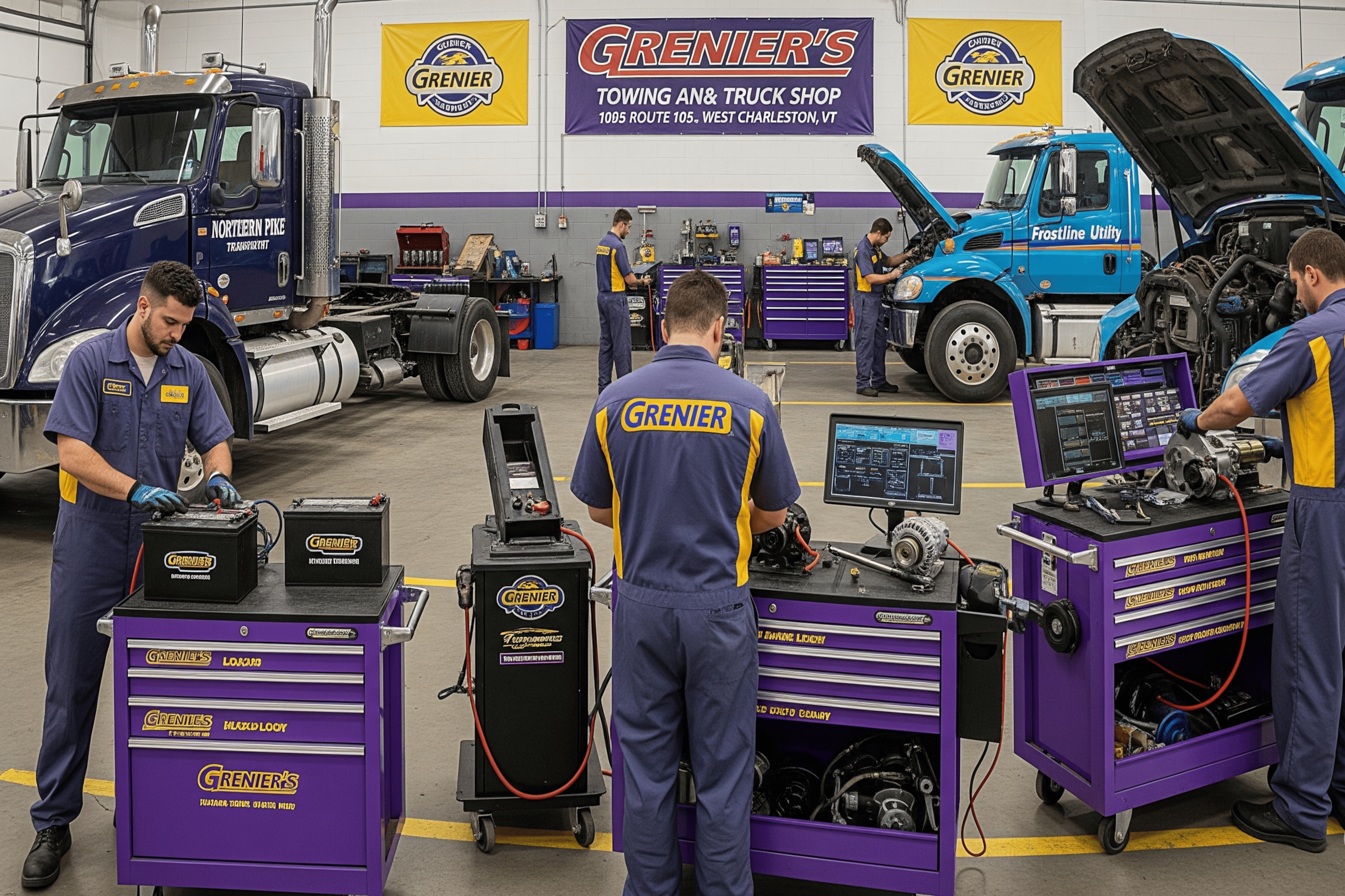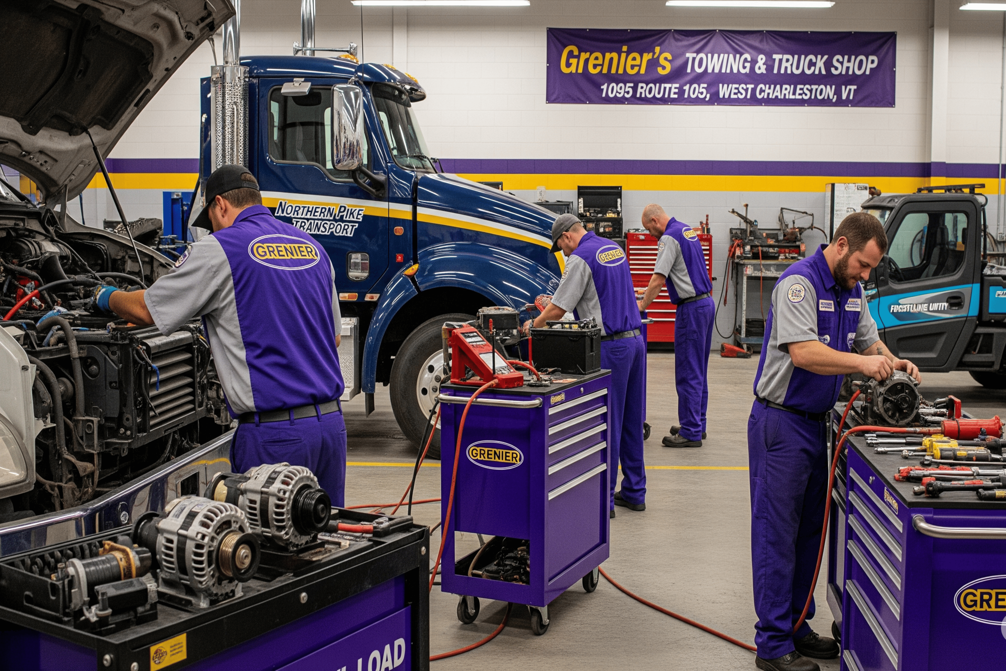 At Grenier's Towing & Truck Shop in West Charleston, Vermont, we dominate starting and charging systems service for heavy-duty trucks. With over 20 years of electrical mastery, our technicians provide critical repairs and upgrades to ensure your trucks start and run powerfully, all executed at our West Charleston location.