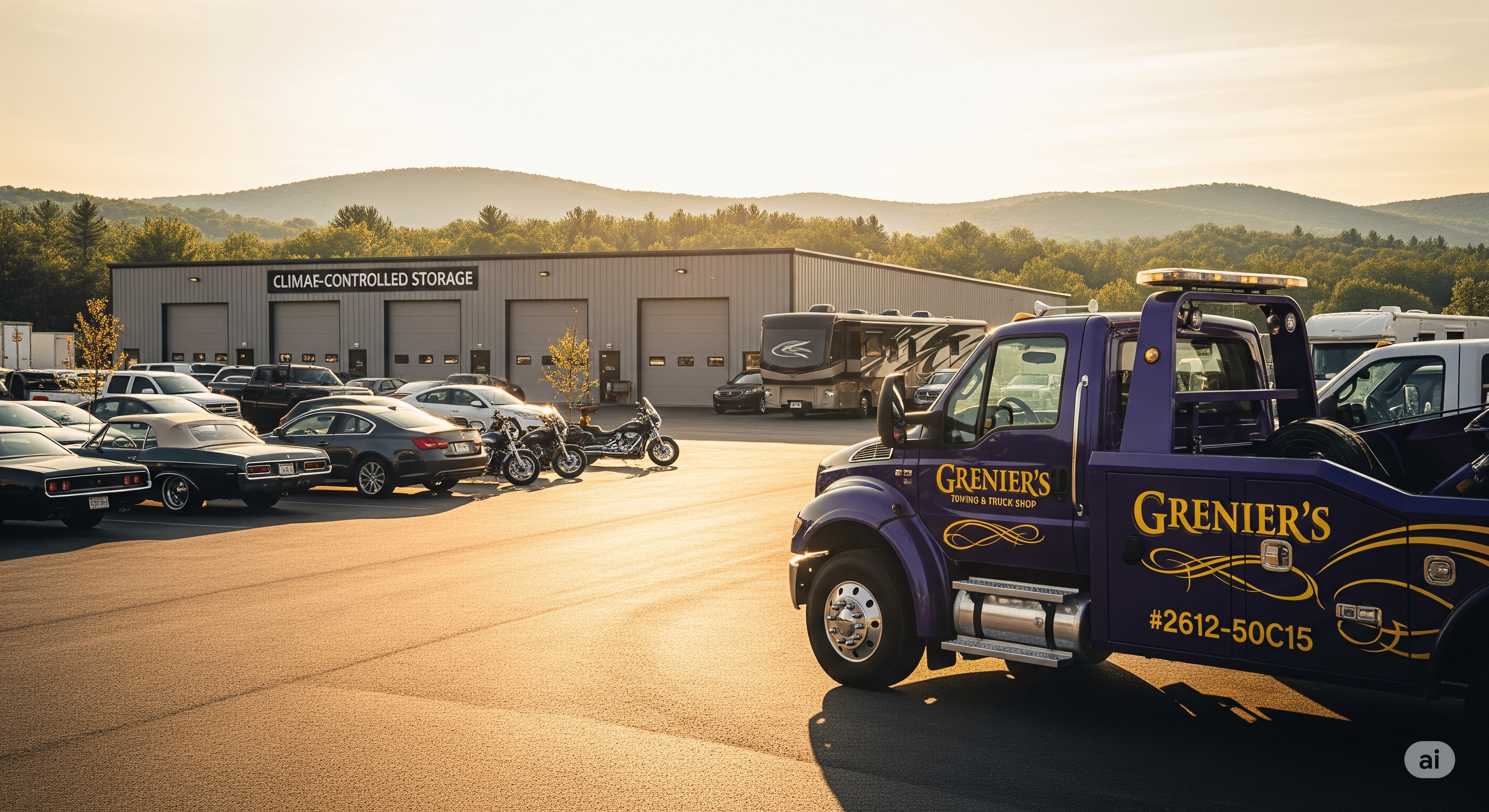 Grenier's Towing & Truck Shop offers secure per-night vehicle storage in West Charleston, VT, with state-of-the-art facilities designed for all vehicle types. Our AAA-approved storage solutions feature 24/7 surveillance, gated access, and climate-controlled options for sensitive vehicles, ensuring maximum protection.