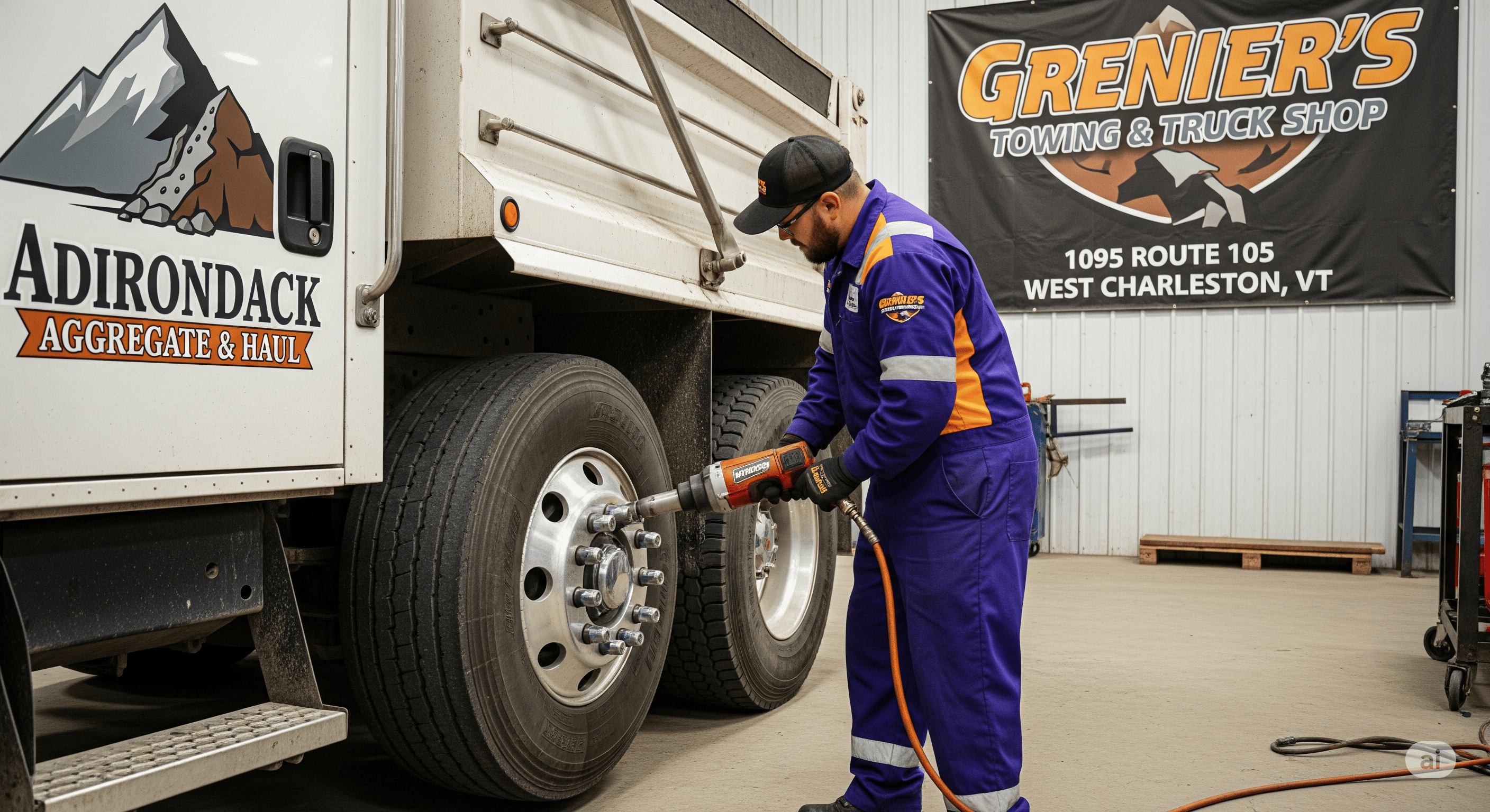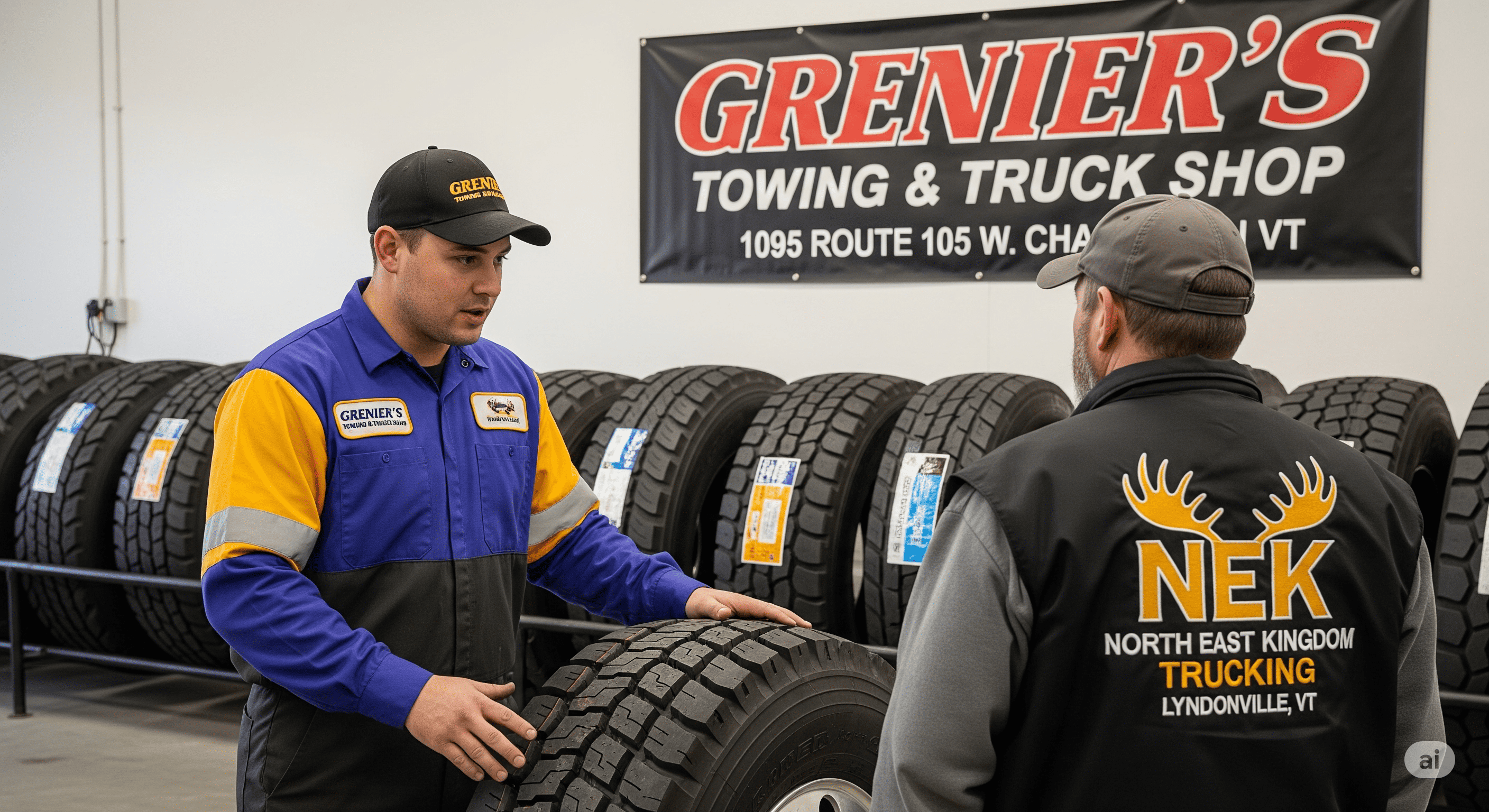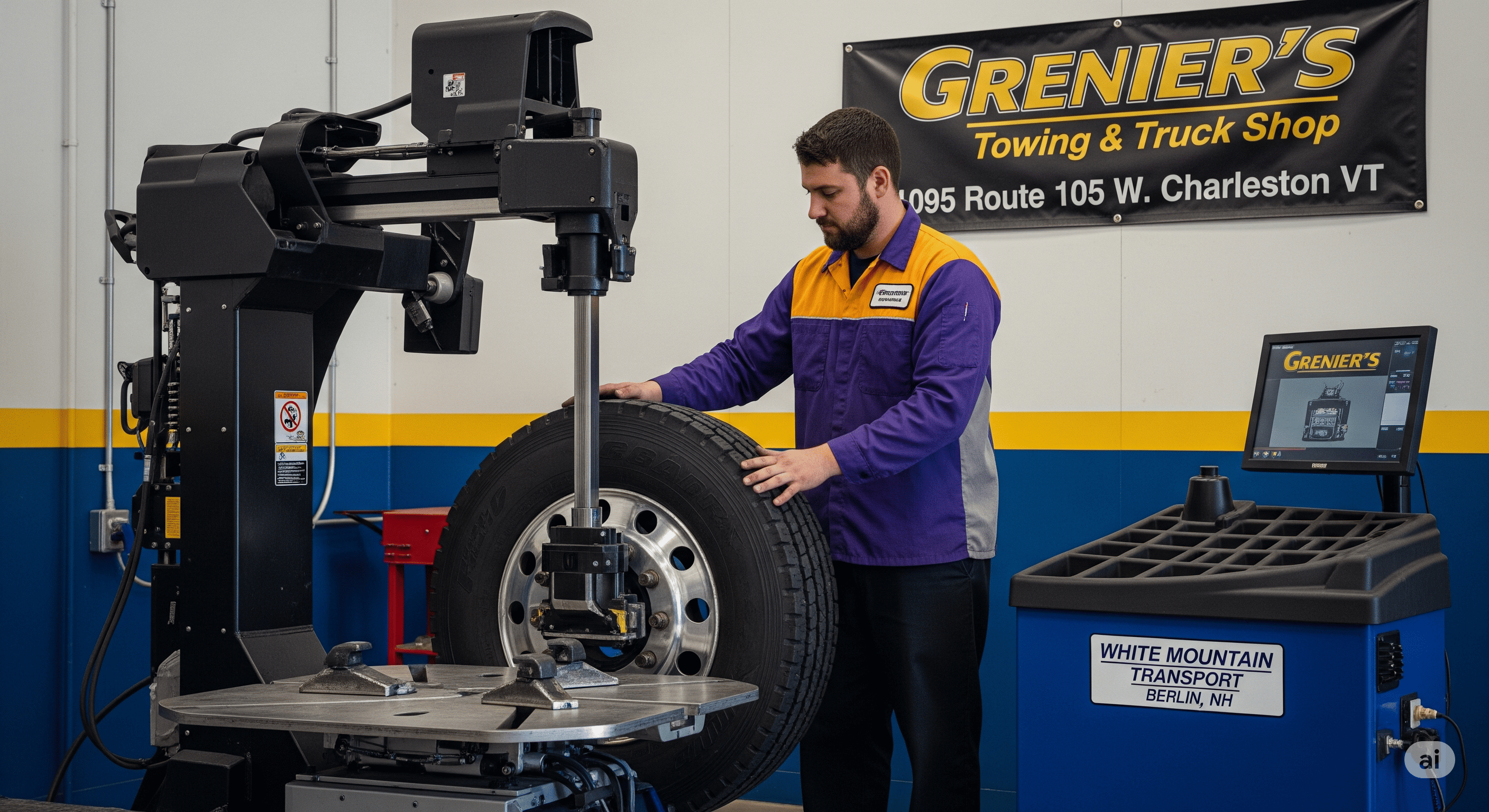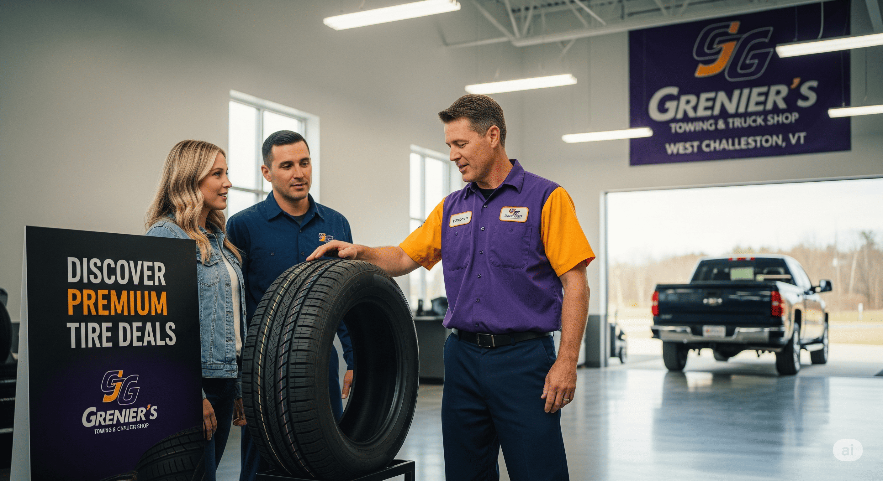 At Grenier's Towing & Truck Shop in West Charleston, VT, we provide expert tire repair and replacement services, featuring exclusive tire sales for autos, SUVs, medium-size, and heavy-duty trucks. With over 20 years of experience, our technicians ensure optimal tire performance, serving Vermont and New Hampshire, including Orleans, Essex, Caledonia, Lamoille, and Washington Counties, as well as towns like Laconia and Meredith.