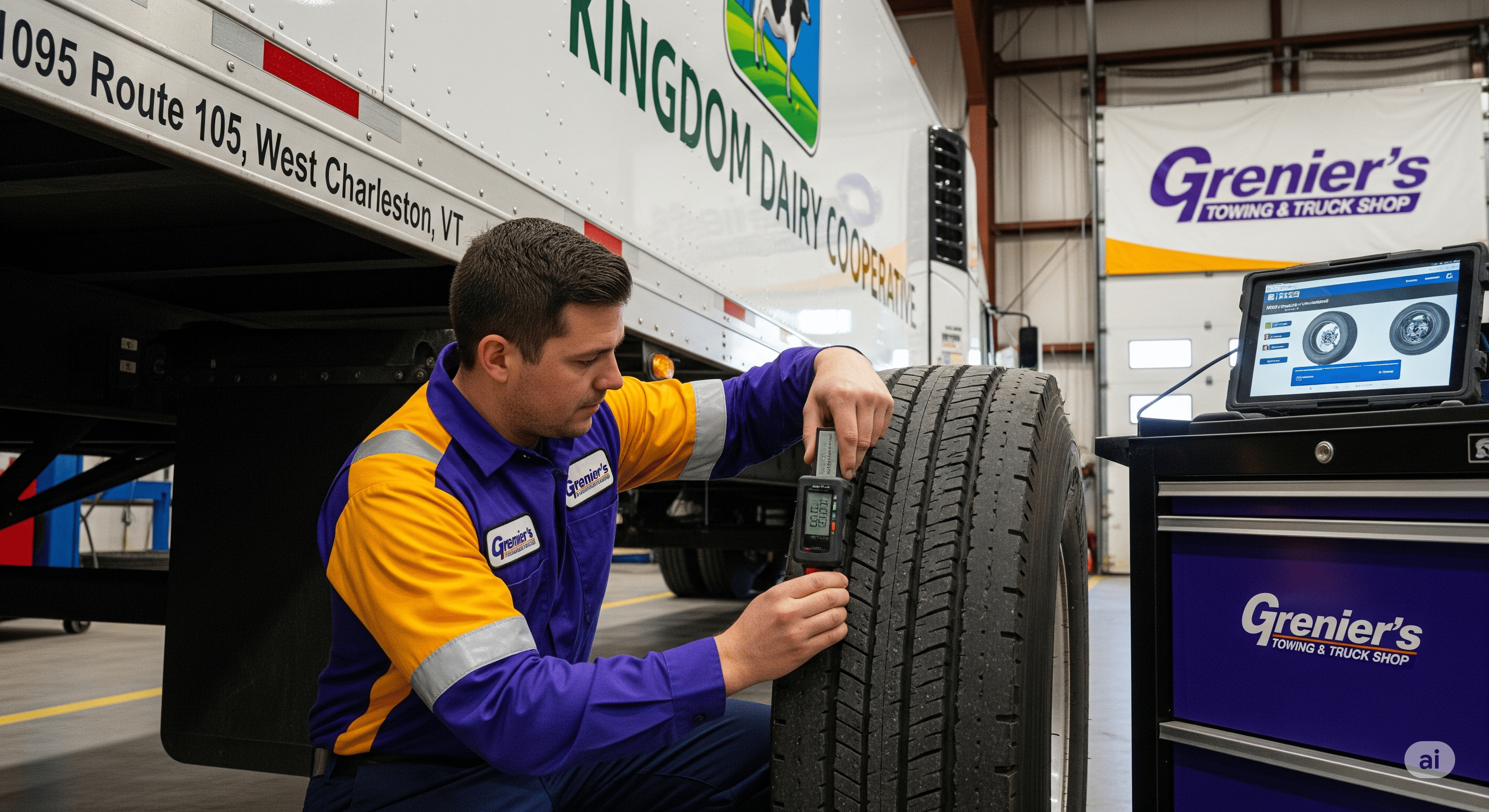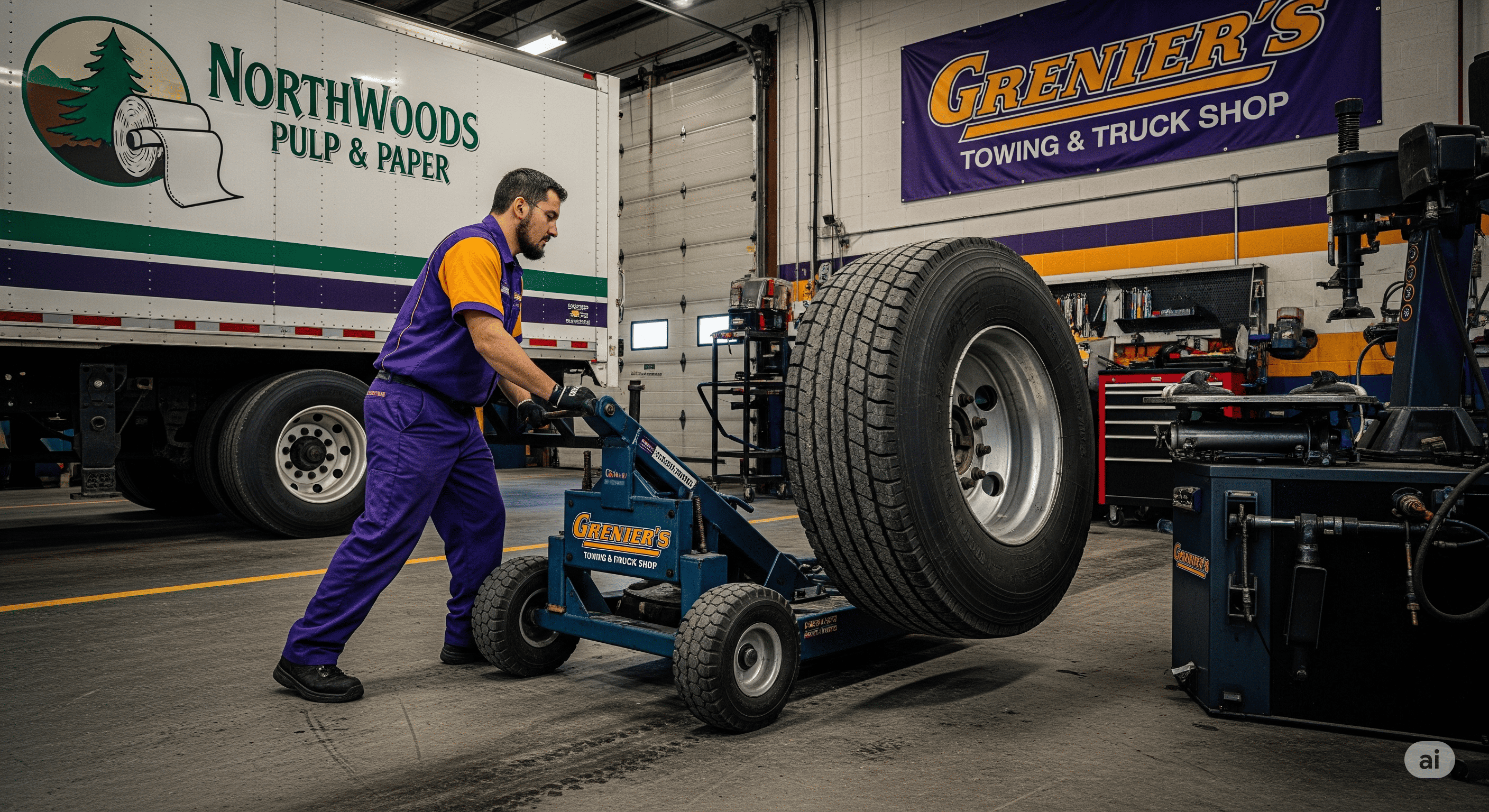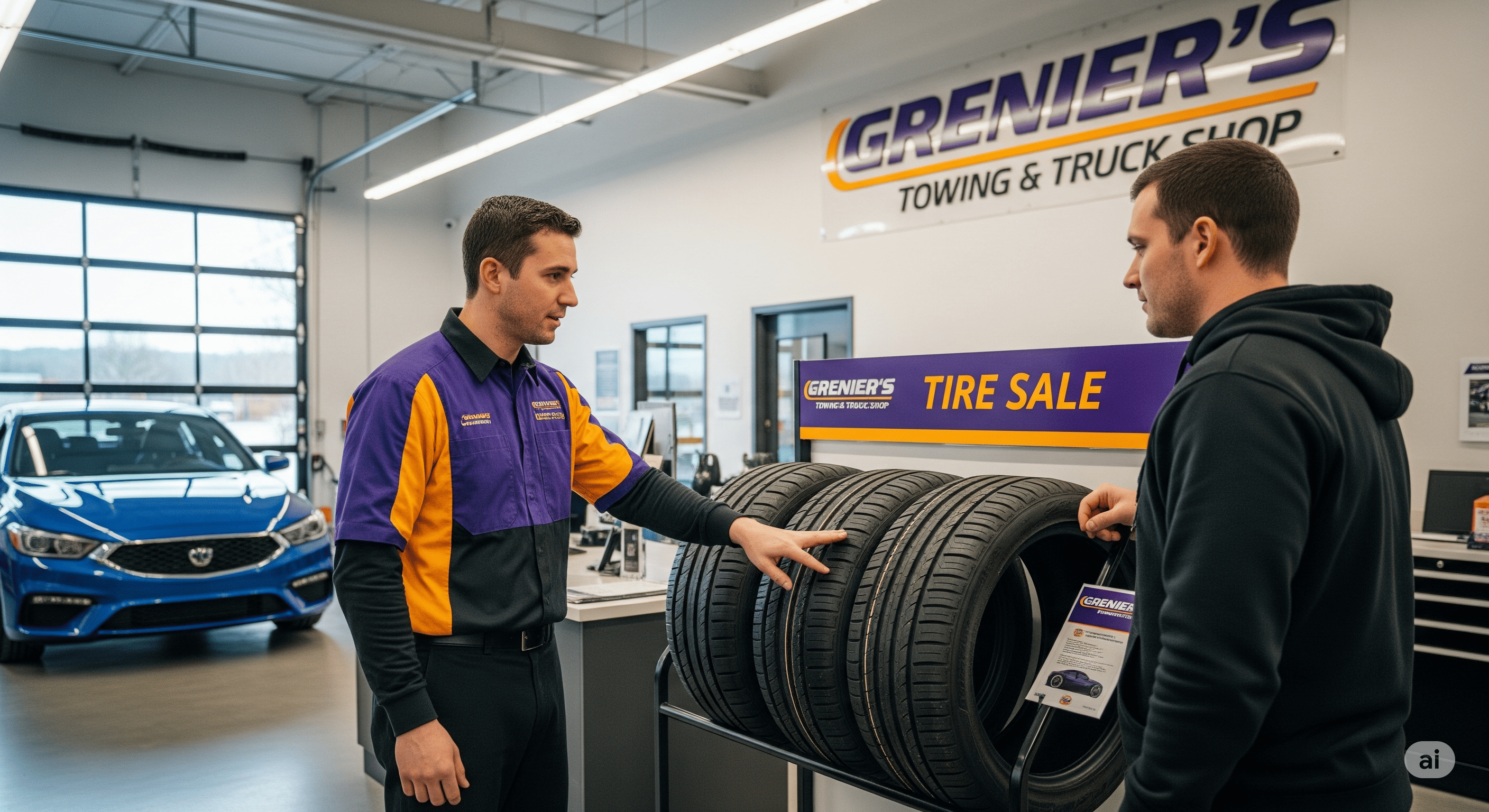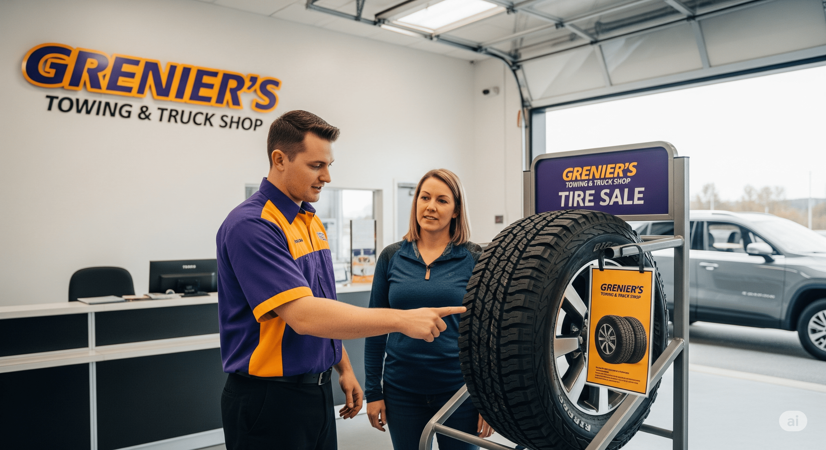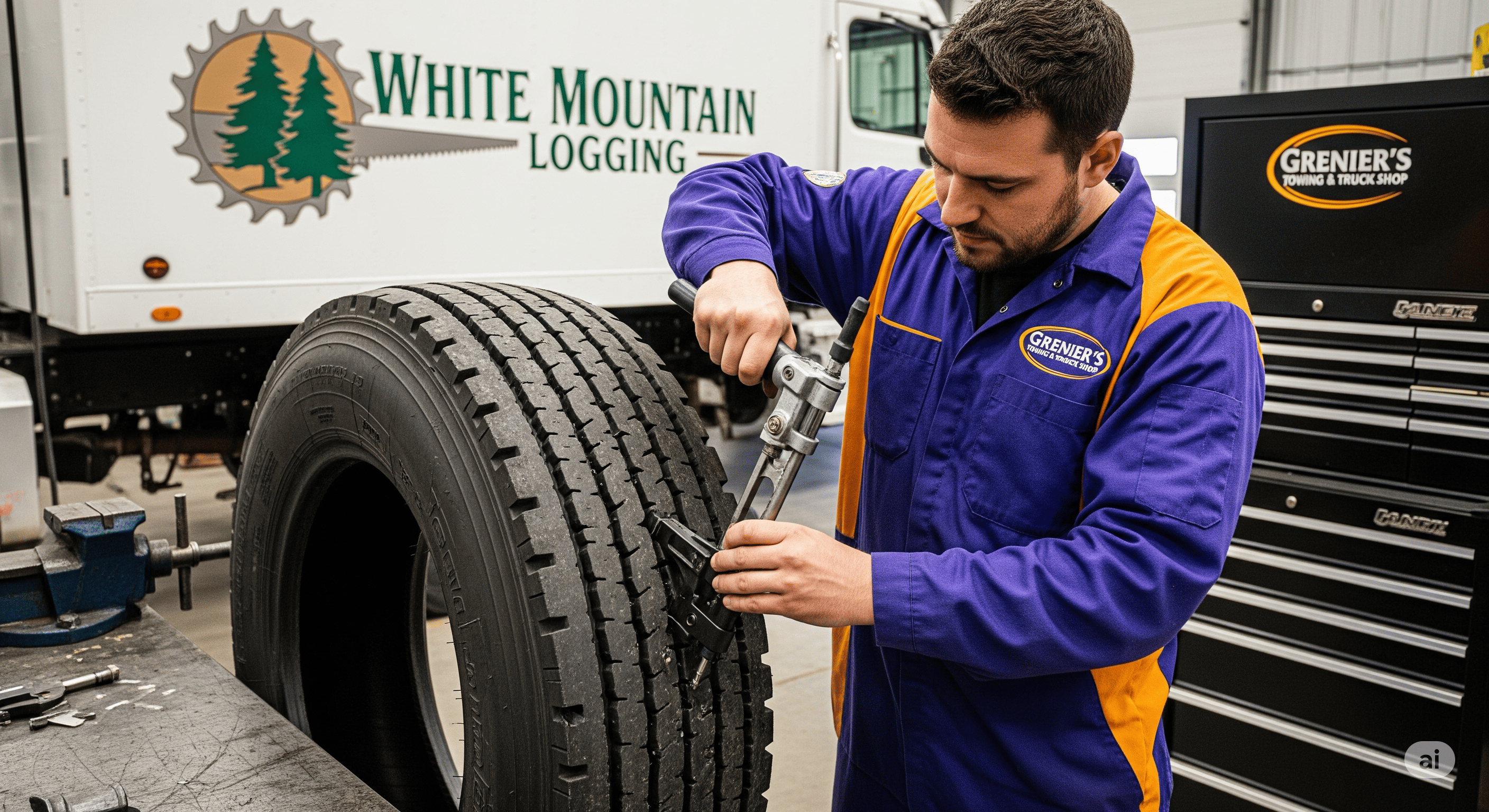 At Grenier's Towing & Truck Shop in West Charleston, VT, we provide expert tire repair and replacement services, featuring exclusive tire sales for autos, SUVs, medium-size, and heavy-duty trucks. With over 20 years of experience, our technicians ensure optimal tire performance, serving Vermont and New Hampshire, including Orleans, Essex, Caledonia, Lamoille, and Washington Counties, as well as towns like Laconia and Meredith.